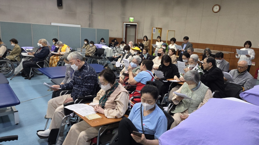 4¿ù 20ÀÏ Åä¿äÀÏ ¿ÀÈÄ 3½Ã, Çѽű³È¸´Â ¼º³²¿¡ À§Ä¡ÇÑ º¸¹Ù½º±â³äº´¿ø¿¡¼ ºÎȰÁÖÀÏ ¿¹¹è¸¦ µå·È½À´Ï´Ù. º´¿ø ³» ȯ¿ìµé°ú º¸È£ÀÚ, ±×¸®°í ÁÖÀÏ¿¡ ±³È¸¸¦ ã±â ¾î·Á¿î º´¿ø Á÷¿øµéÀÌ ÇÔ²²ÇÑ ÀÌ ¿¹¹è´Â, ÇÑ ÁÖ°£ °¡Àå ±íÀº À§·Î¿Í ±â»ÝÀÌ ±êµç ¼ø°£À̾ú½À´Ï´Ù. ºñ·Ï »óȲÀÌ ¿©ÀÇÄ¡ ¾Ê¾Æ ±³È¸¿¡´Â ³ª°¡Áö ¸øÇÏ´Â À̵éÀÌÁö¸¸, ±×µéÀÌ ÀÖ´Â ¹Ù·Î ±× ÀÚ¸®¿¡¼ Çϳª´Ô²² ¿¹¹èµå¸± ¼ö ÀÖ´Ù´Â °Í, ±×°ÍÀº ºÎȰÇϽŠÁÖ´ÔÀÌ ¿ì¸®¿Í ¾îµð¼µç ÇÔ²²ÇϽŴٴ º¹À½ÀÇ Áø½ÇÀ» °¡Àå µû¶æÇÏ°Ô º¸¿©ÁÖ´Â ¸ð½ÀÀ̾ú½À´Ï´Ù. Ưº°È÷ À̳¯ ¿¹¹è¿¡¼´Â º´¿ø¿¡¼ ¼ºÂù½ÄÀÌ ÇÔ²² ÁøÇàµÇ¾ú½À´Ï´Ù. ÁÖ´Ô²²¼ ¸öÀ» Âõ°í ÇǸ¦ È긮½Å ±× ÀºÇý¸¦ ±â³äÇϸç, ÀÛÀº ¶±°ú ÀÜÀ» ÇÔ²² ³ª´©´Â ¼ø°£, ´«½Ã¿ïÀ» ºÓÈ÷´Â À̵鵵 ÀÖ¾ú½À´Ï´Ù. º´»ó °ç¿¡ ÀÖ´ø °¡Á·µé, ÈÙü¾î¿¡ ¾É¾Æ Àִ ȯ¿ìµé, ¹Ù»Û Áß¿¡µµ ÇÔ²² ÀÚ¸®ÇÑ º´¿ø Á÷¿øµé ¸ðµÎ°¡ °í¿äÇϰÔ, ±×·¯³ª ±íÀº °¨µ¿ ¼Ó¿¡ ¼ºÂùÀ» ¹Þ¾Æµé¿´½À´Ï´Ù. ºÎȰÀÇ ÀºÇý´Â Àå¼Ò¸¦ °¡¸®Áö ¾Ê°í, »óȲÀ» ÃÊ¿ùÇÏ¿© ÀÓÇÑ´Ù´Â »ç½ÇÀ» ´Ù½Ã±Ý ±ú´Ý°Ô ÇØÁÖ´Â ÀºÇý·Î¿î ½Ã°£À̾ú½À´Ï´Ù.